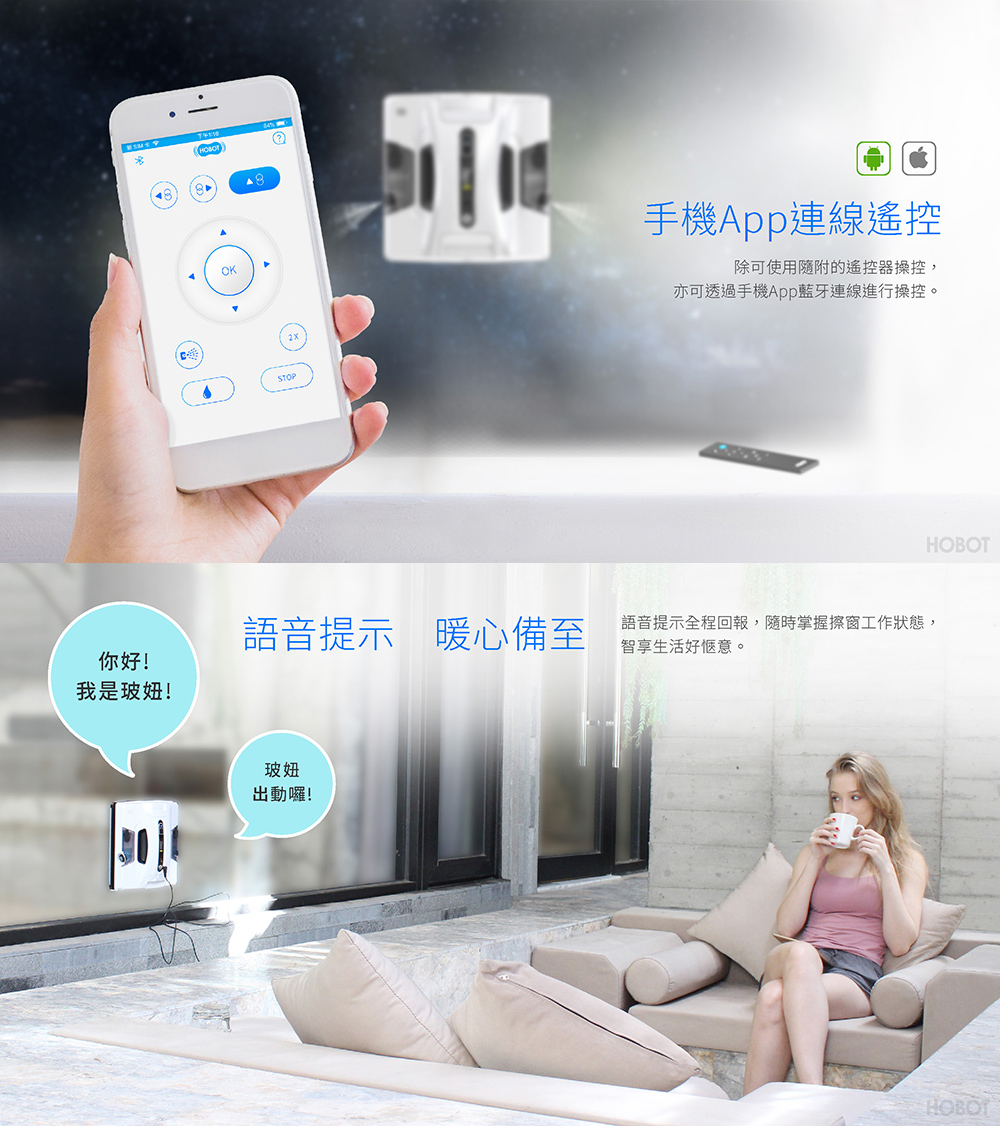 玻妞雙邊超音波噴水擦玻璃機器人HOBOT-2S 尺寸:長24 寬24 高8.6cm 電壓:100-240V/50-60Hz 產地:台灣製造 清潔方式:乾擦/濕擦 可更換式水箱 / 可更換清潔布